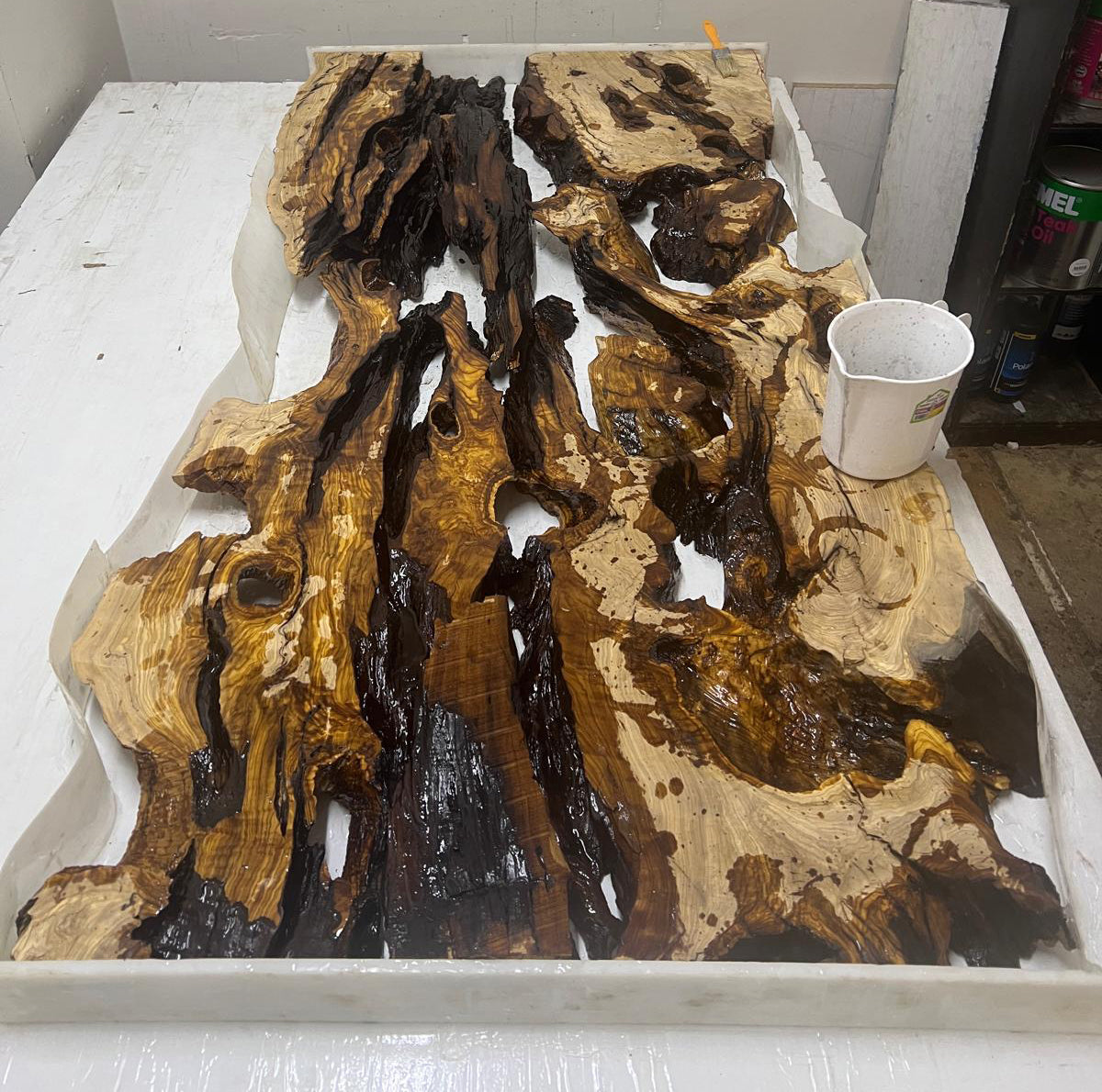 Witness the breathtaking transformation of raw, natural wood into a stunning handcrafted table. Our artisans carefully select and refine each piece, enhancing its unique patterns with high-quality resin and a flawless glossy finish. Every table is a testament to dedication, skill, and timeless design.