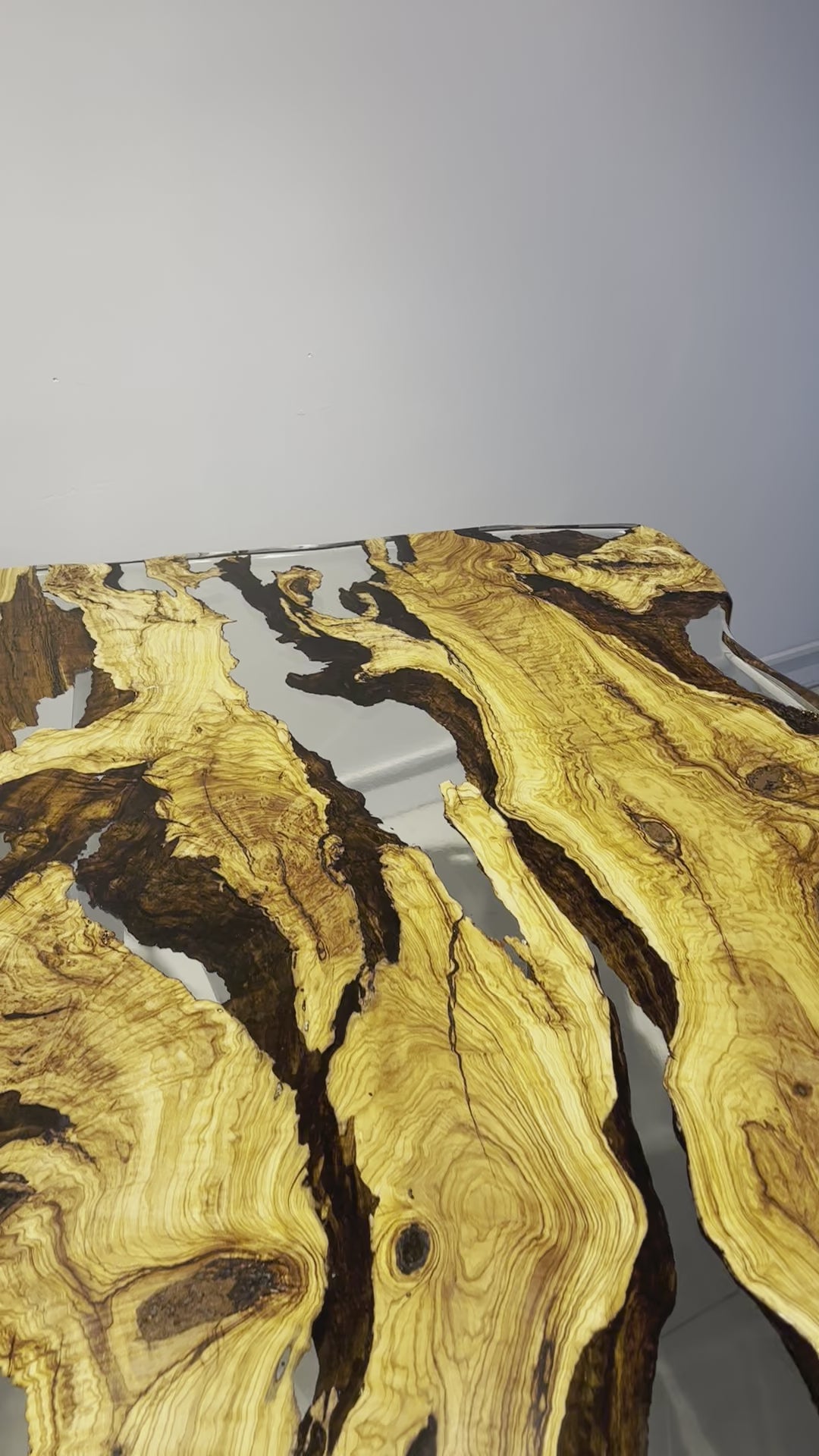 Custom live edge olive wood epoxy resin dining table.